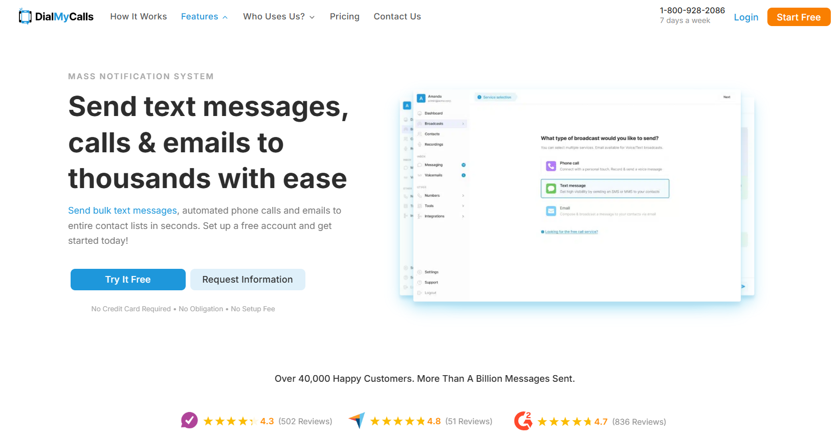 If you want a comprehensive mass notification system that streamlines client communications, you can choose DialMyCalls. This platform enables virtual assistants to send voice calls, text messages, and emails simultaneously to hundreds of contacts with just one click.