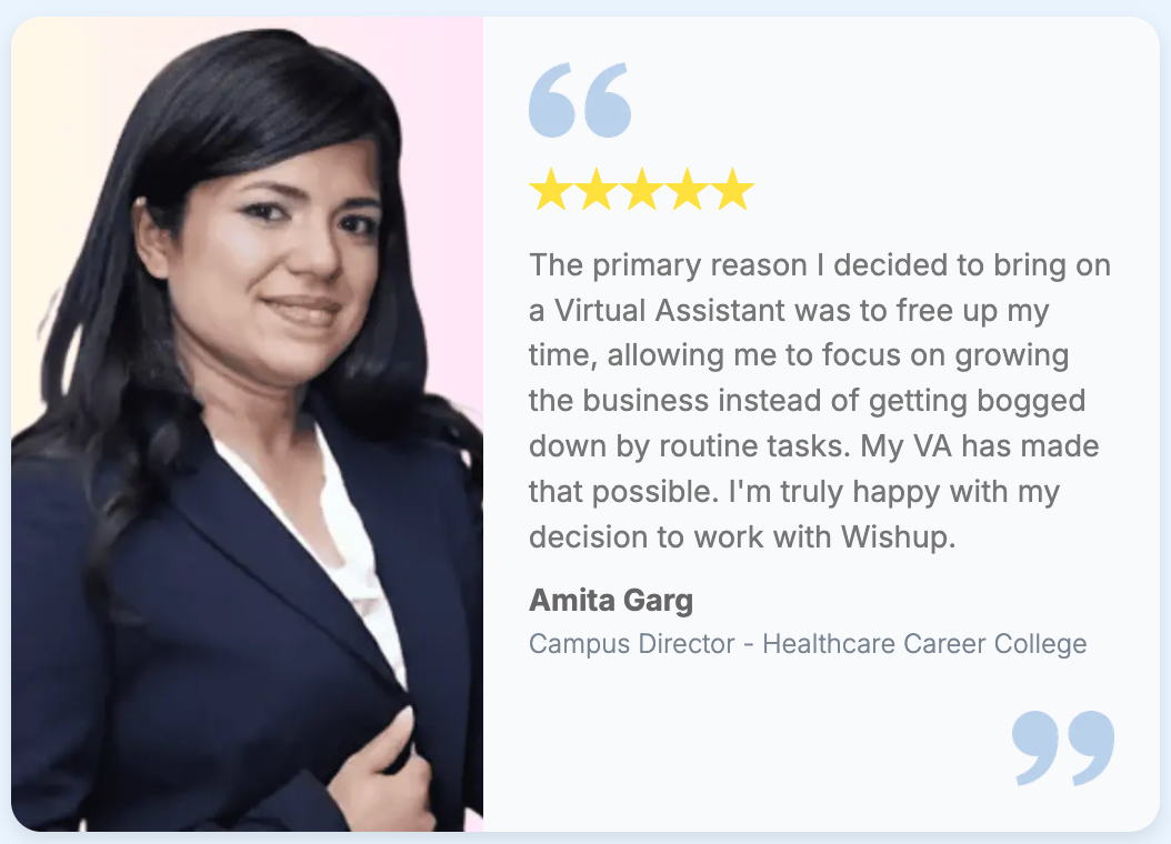 With Wishup, you get an elite virtual assistant who actually transforms how your business runs - handling operations, marketing, finance, and more, so you can focus on growth.