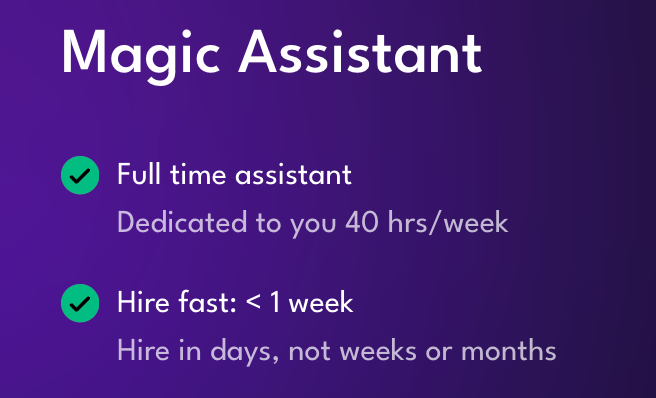 Magic virtual assistant has a hiring process that could take less than a week, which is still faster than traditional hiring.