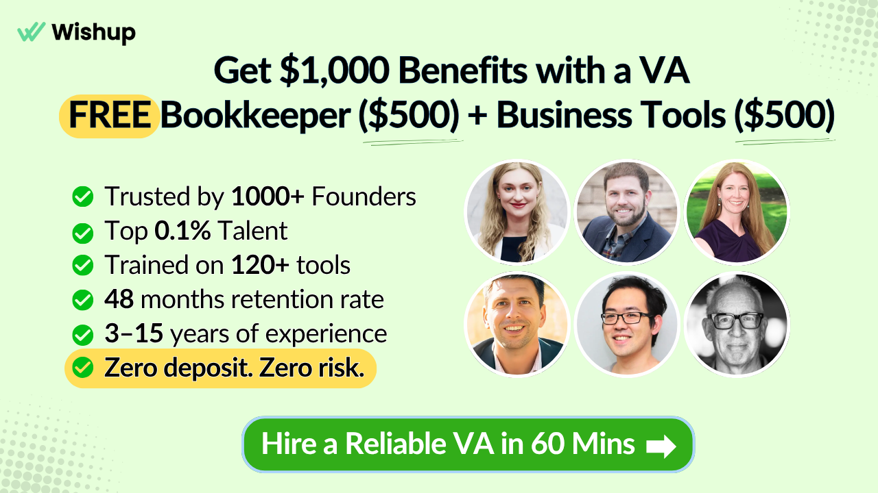 With Wishup, you can hire and onboard a pre-trained, triple-vetted virtual assistant in just 60 minutes. That means: