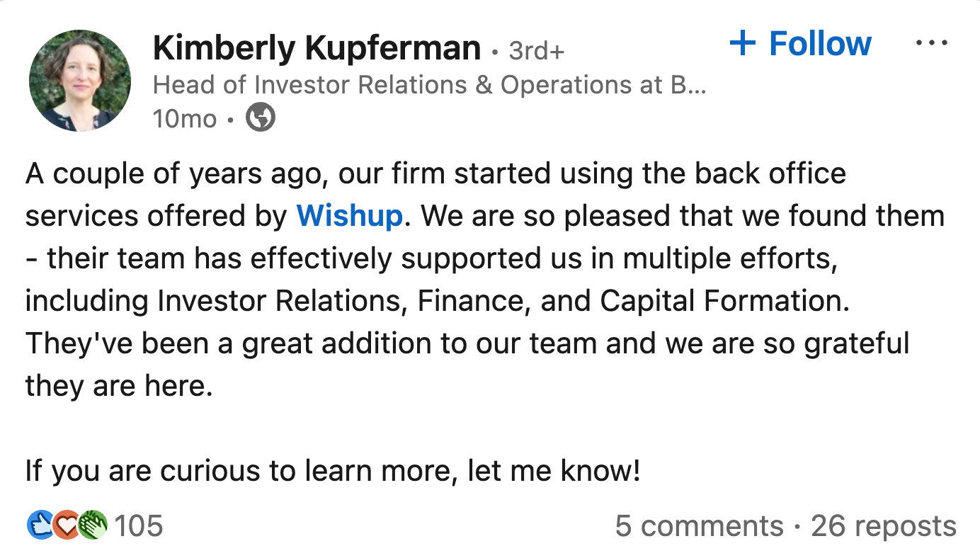 Wishup is the operating layer that runs your day-to-day execution, so the practice doesn’t stall when you're busy thinking.