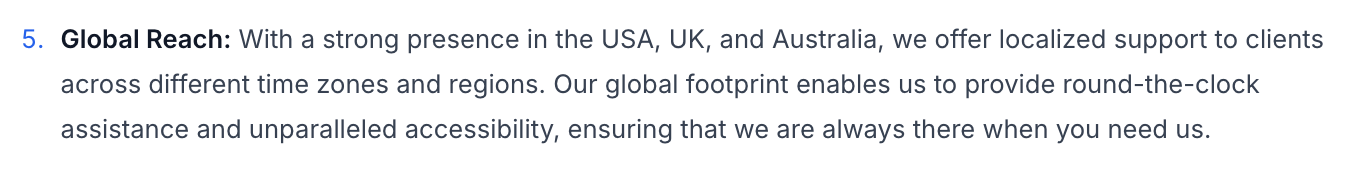Patterns VAs have presence across the USA, UK, and Australia, but not clear if their virtual assistants are based from the same countries or from somewhere else.
